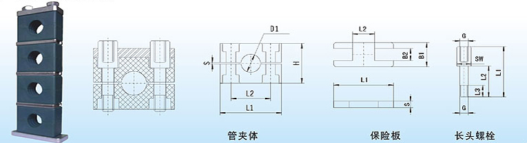 管夹体 | 保险板 | 长头螺栓 | ||||||||||||