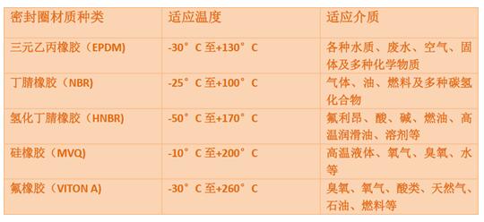 橡胶材质:三元乙丙橡胶、硅胶、氟胶、丁腈橡胶等。